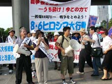 被爆60周年を迎えた8月6日、広島県立総合体育館で第7回目の「8.6ヒロシマ大行動が開催された。国際連帯として、イラク・韓国・中国からのゲストを迎えた。また被爆者、被爆二世、さらには沖縄で反基地闘争を闘う労働者、「日の丸・君が代」闘争を闘う東京・広島の教育労働者、「つくる会教科書阻止の特別報告」、国鉄(jR)の解雇撤回闘争を闘う鉄建公団訴訟の原告と、全国のそれぞれの現場で「戦争への道」を阻止するために闘う者たちの連帯で集会はすすめられた。一人の勇気とそれを支える仲間がある限り、「平和と平等」を求める闘いは決して滅びることはない、そんな確信を抱かせる第7回の8.6行動であった。