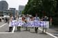 7月16日(土)11時より、広島県庁前広場において、県内各地から約300人が集まって、2005年教科書採択問題・広島県民ネットワークが主催する広島県民集会が開催されました。主催者のあいさつに続き、被爆者、反基地運動、弁護士、在日韓国人、教育関係者などさまざまな立場から、「つくる回」教科書をこのヒロシマの地で、絶対に採択させてはならないという訴えが続きました。集会の後、本通り、金座街、YMCA、そして県教委まで約1時間、ギター、チァンゴ、太鼓の明るいひびきとともにパレードし、道行く人々に教科書問題をアピールしました。7月13日栃木県大田原市教育委員会が、「つくる会」教科書の採択を決定したことも伝えられており、参加者一同それぞれが危機感をもって集まり、いい集会とパレードになりました。