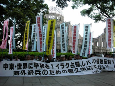 参加者は、「テロとの闘い」の名のもと、米軍の侵略戦争によってイラクで数万人の市民が犠牲になっていること、憲法に抵触する自衛隊派兵などで米軍を積極的に支援してきた日本の外交を厳しく批判。また「被爆地ヒロシマの心を世界に伝えよう、暴力に暴力で応じるのではいつまでも戦争は終わらない、在日米軍再編・岩国基地機能強化に反対していく、平和憲法の遵守を求めるなどのアピールを採択した」