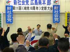 5月14日、新社会党広島県本部は第11回(結党10周年)定期大会を、三原市において開催した。県内各総支部からの代議員82人、来賓として各支援組織から、また中央本部からは横堀書記長が参加した。